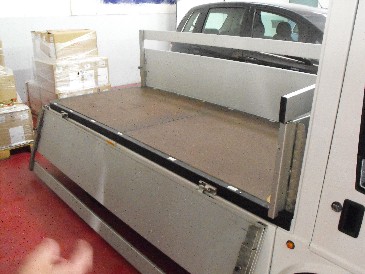 Die Pritsche ist 3 seitig aufklappbar somit für die Verladung universell einsetzbar.