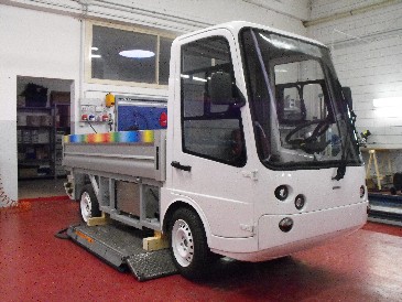 Nicht nur das der Fahrzeugrahmen komplett aus Aluminium ist, auch die Batterien sind mit einem Schnellwechselsystem ausgestattet was den Wagen nach 10 Minuten wieder mit neuer Leistung versorgt.
